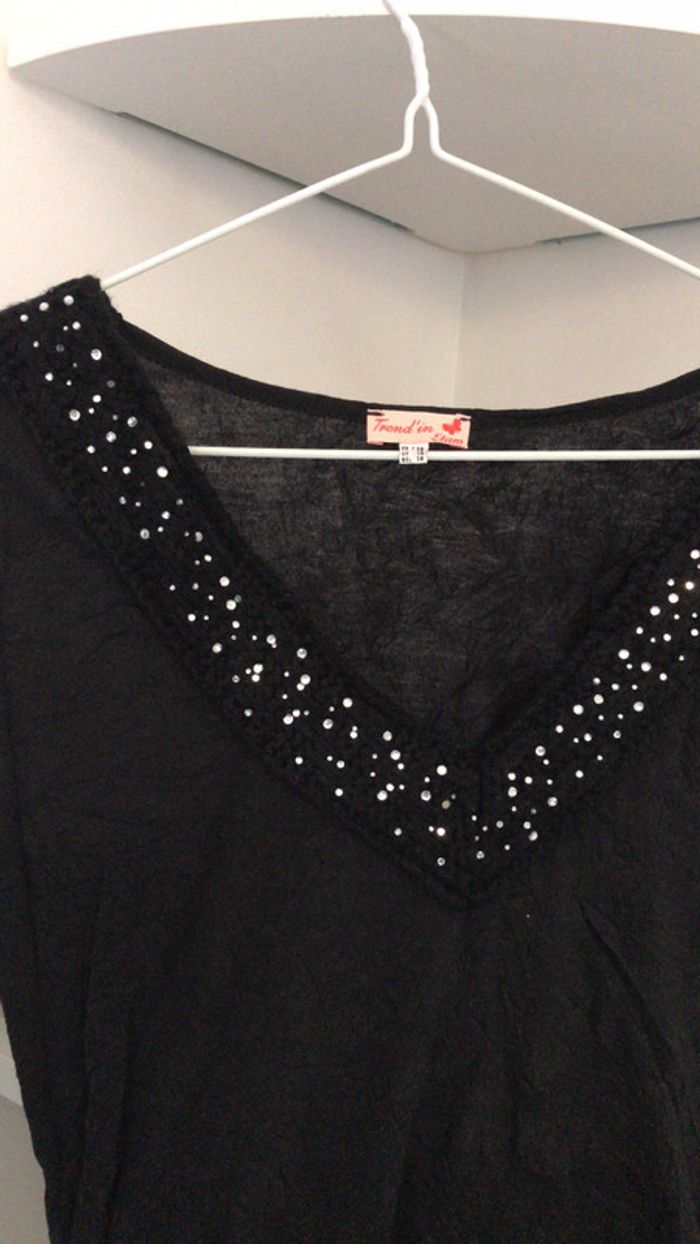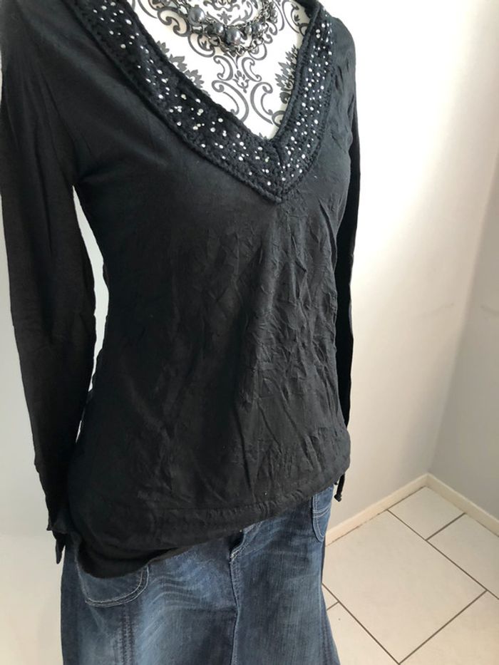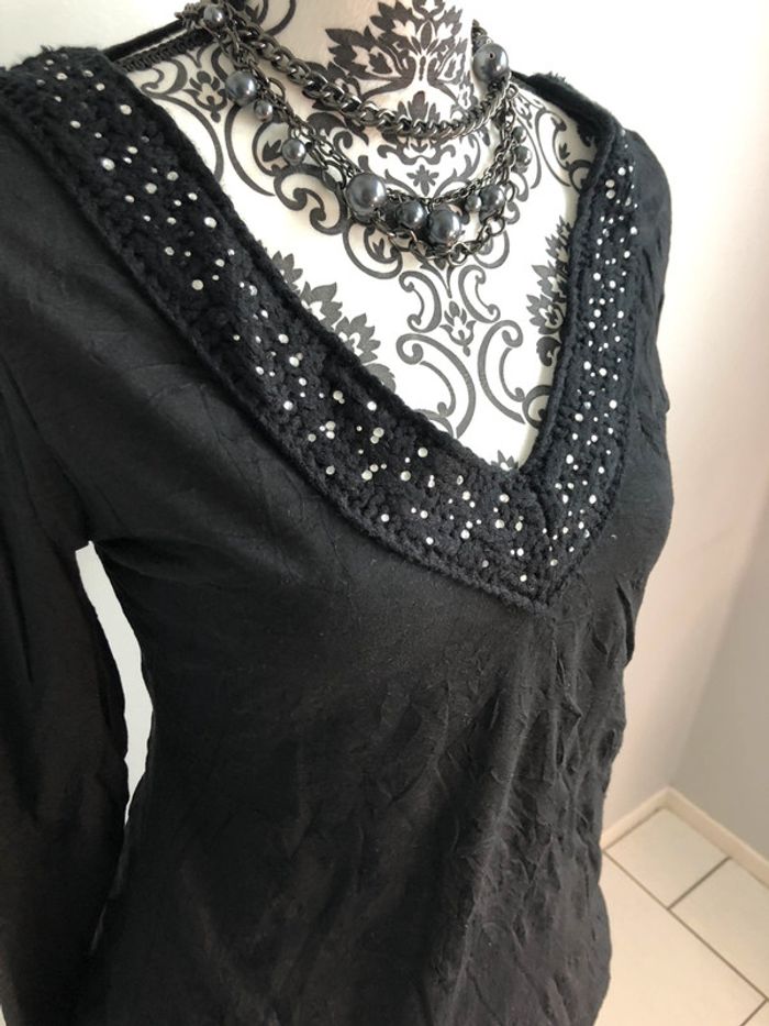 Tunique blouse noire à strass Etam taille 38 - photo numéro 7