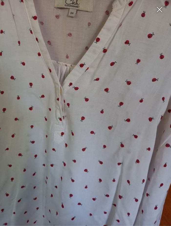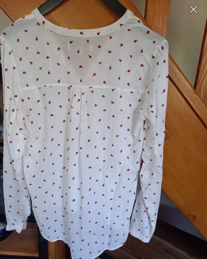 💥PROMOTION 💥 ........-50% ...... 🏷1€50 FEMME 34/ XS N°133 Blouse blanche Rouge coccinelle 🐞 Taille 34 , xs Plus long au dos Ckh 3e #kelly_femmeT34
