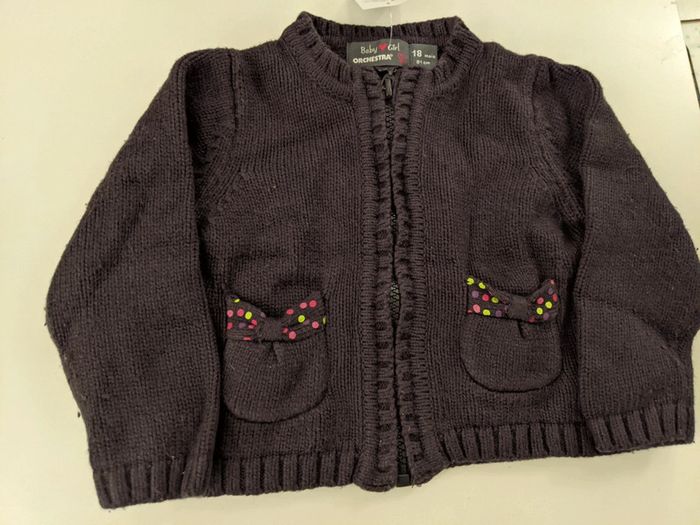 Gros gilet cardigan zippé chat gris taupe Orchestra 18 mois 81 cm - photo numéro 1