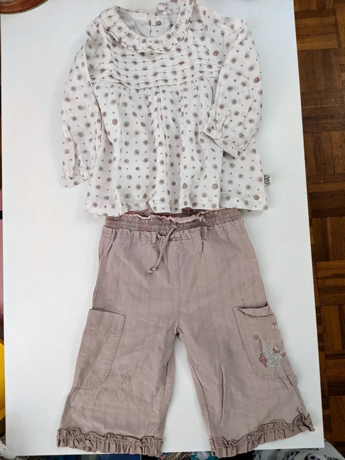 Magnifique ensemble 2 pieces Sergent Major - Tout Compte Fait- 18 mois 81 cm en coton Joli pantalon mignon beige taupe rose, excellent état, porté 2 fois Tunique blouse chemisier Sergent major 18 mois 81 cm entièrement doublée, col froufrous, col fantaisie, manches longues, neuf #yipin_bebe_18mois #yipin_bebe_18mois_fille