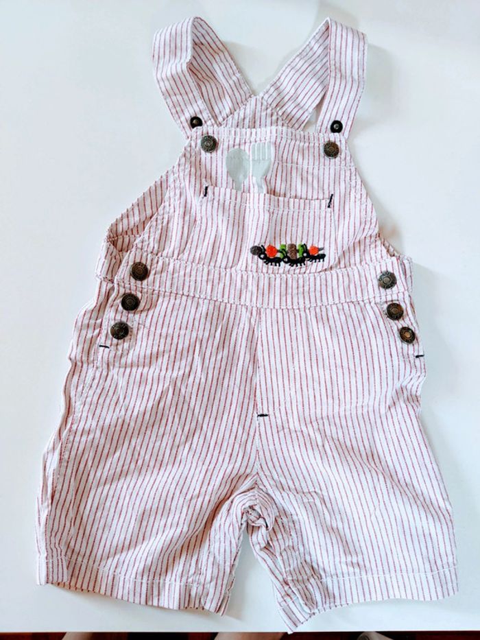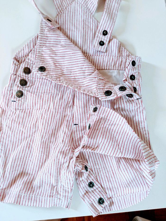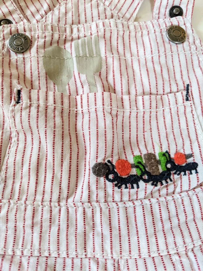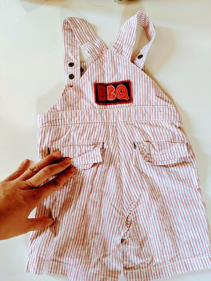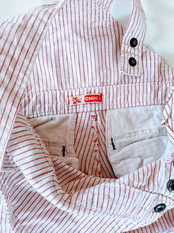 Salopette courte blanche rayée rouge coton 12 mois 74 cm Du Pareil au Meme thème BBQ barbecue fourmis brochette
