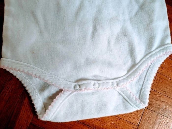 Body coton blanc épais festons dentelle rose Jacadi 6 mois - photo numéro 4