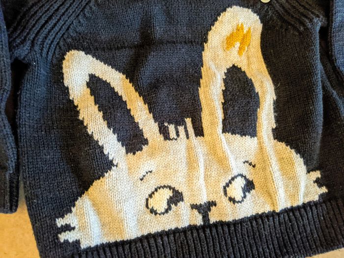 Joli pull lapin Kiabi taille 6 mois - garçon Beau pull épais en coton Neuf, je l'ai juste lavé #yipin_bebe_6mois_garcon #yipin_bebe_6mois_pull