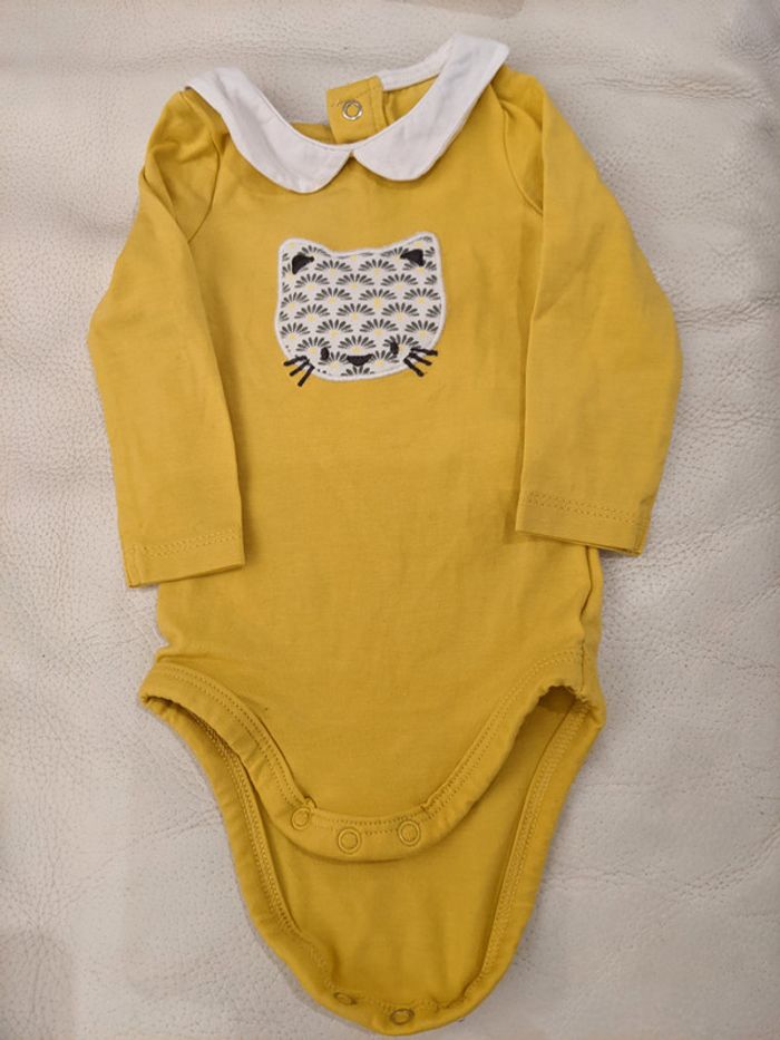 Body manches longues Neuve jamais porté Motif chat Col claudine Ouverture boutons pression dans le dos 100 % coton, très doux Taille 3 mois - 59 cm