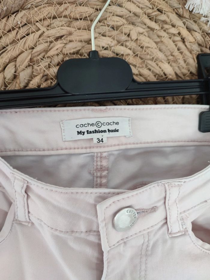 Jean rose pâle 2 petites taches a l'arrière ( voir photo ) Longueur :101cm Entrejambe : 75cm 👗Marque : Cache Cache 👗Taille : 34 #modelia8634 #jeanrose #cachecache #jeancachecache