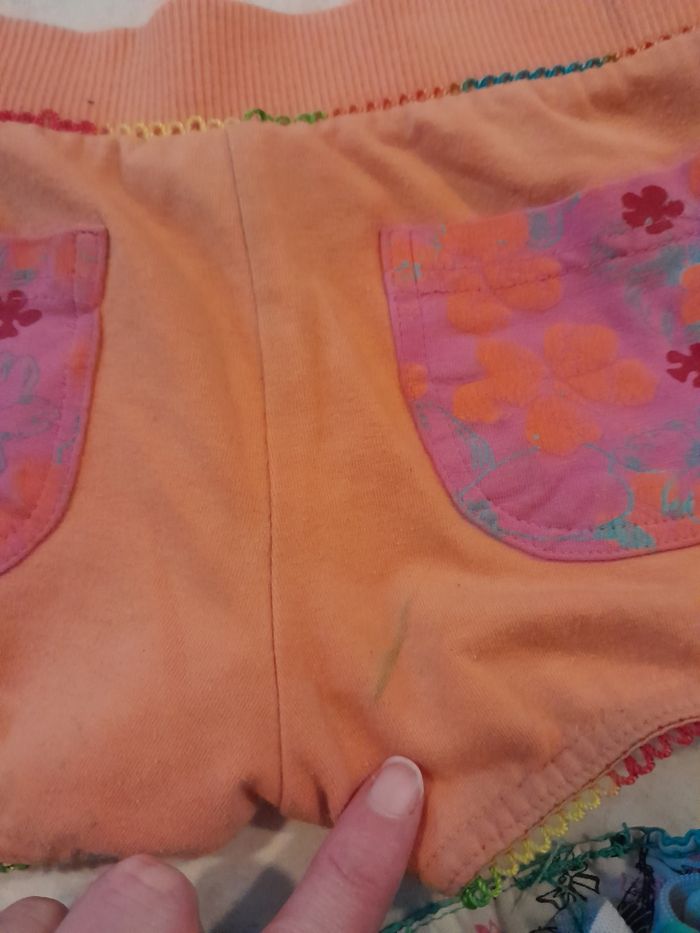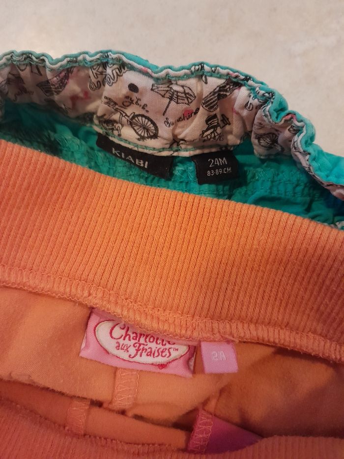 Lots de 2 shorts de marque kiabi et charlottes aux fraises. Une petite trace de feutre sur l'arrière du short orange. Possibilité de vendre séparément.