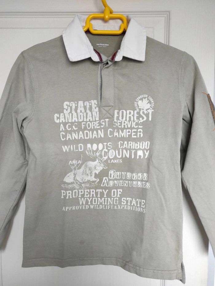 Polo. Imprimé . Kaki clair manches longues