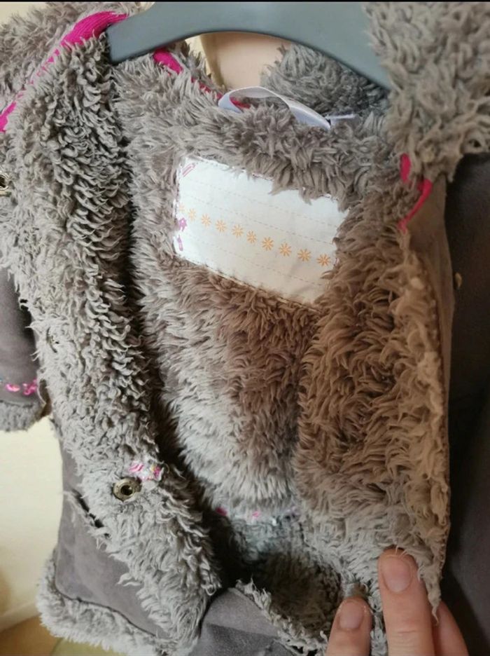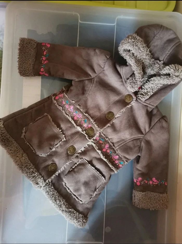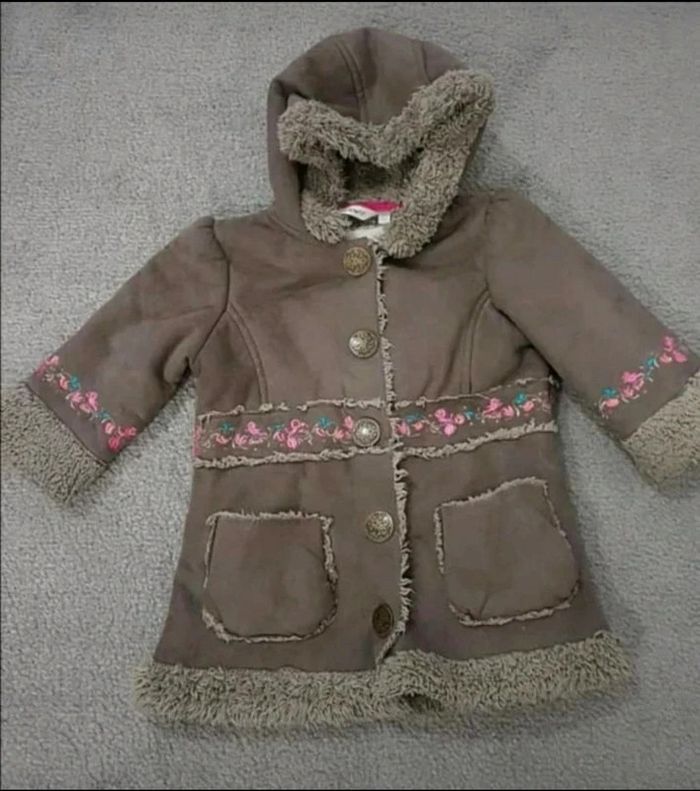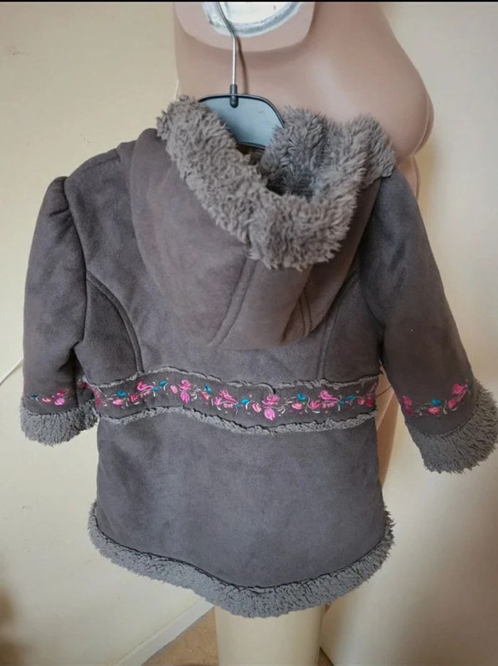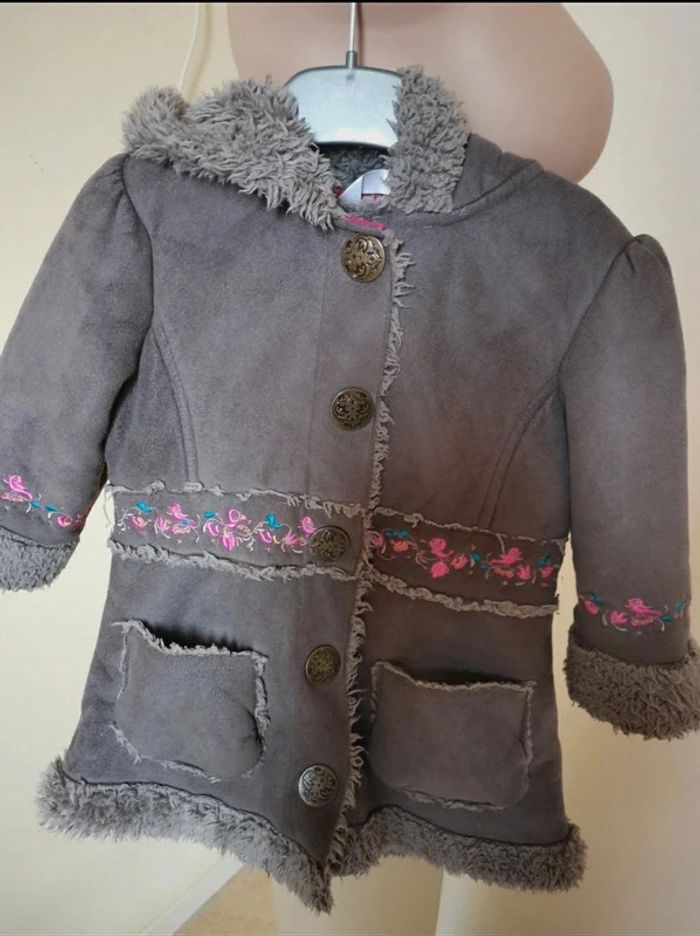 Manteau kid kanai, taille 18 mois / 81 cms. #imitationfourrure #fleurs #fille #bébé #chaud #taupe #bleu #mov59Enft