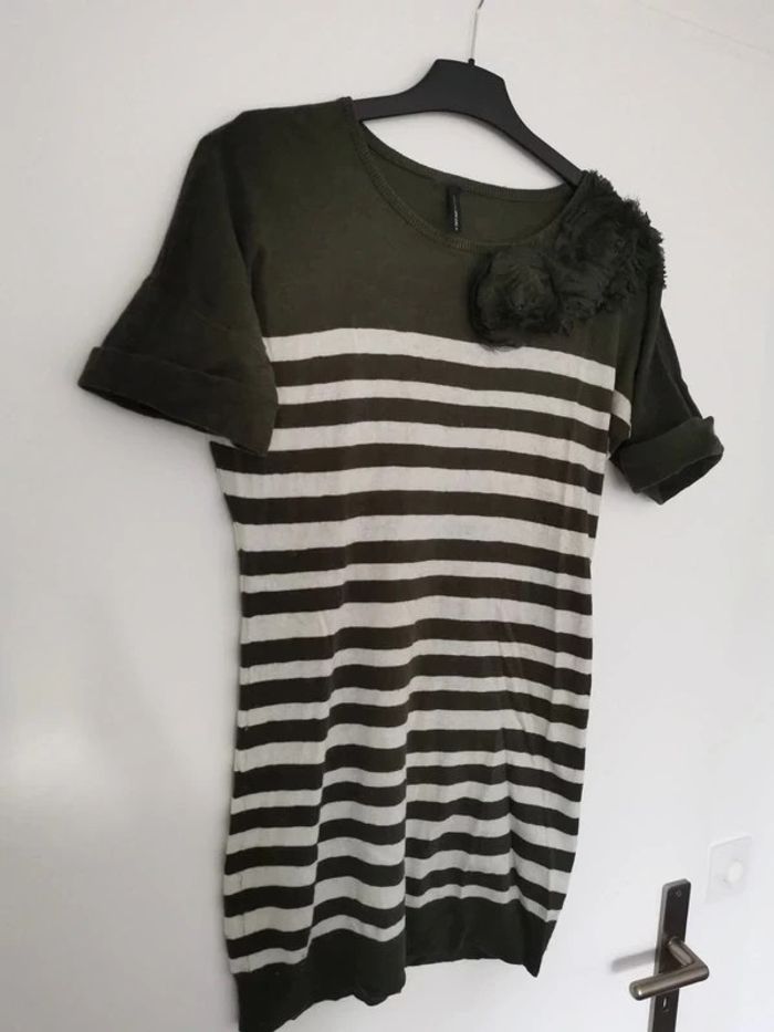 Robe pull fine, peu portée, très bon état Longueur 90 cm Coton, modal et laine Un peu boulochée (vraiment peu) #gestreept