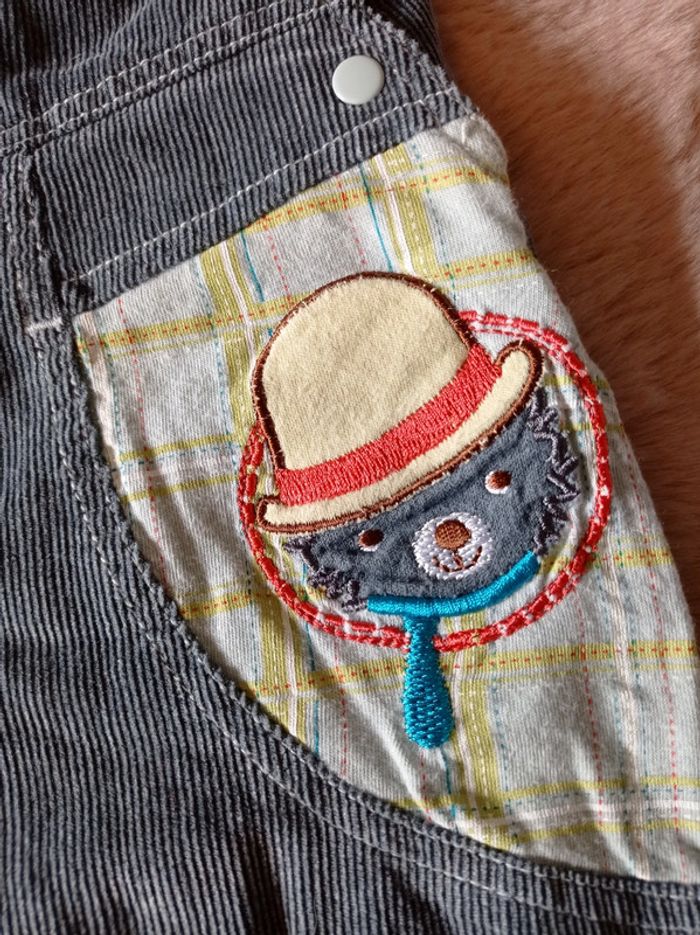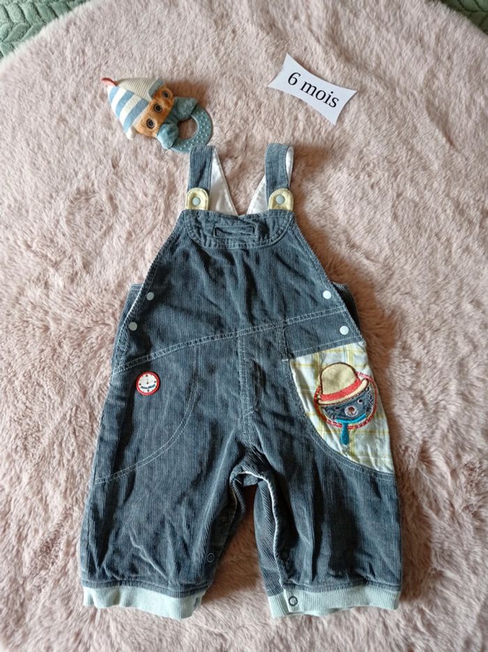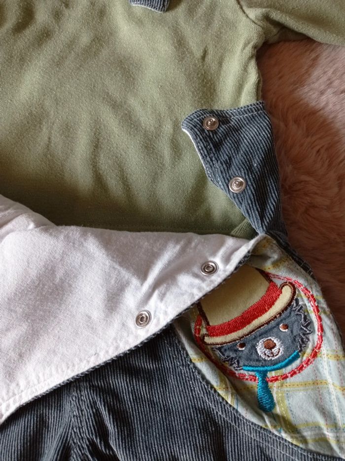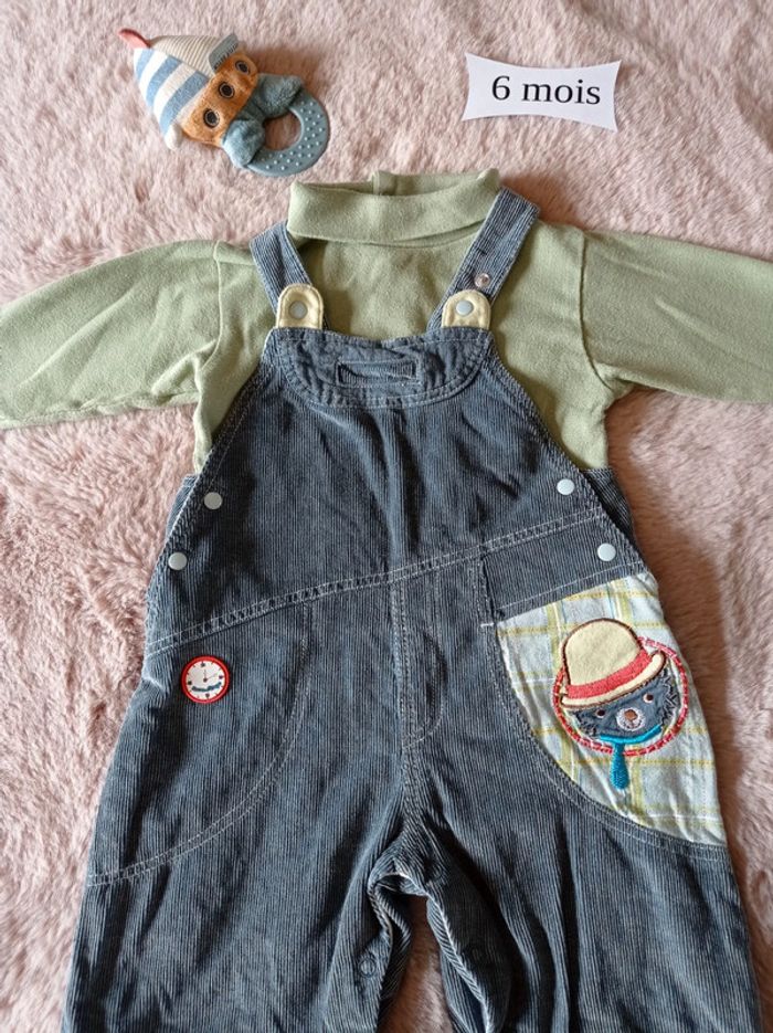 Ensemble comprenant : Une salopette Sucre d'Orge en velours finement côtelé bleu-gris. Doublée. Empiècement d'un tissu à carreaux sur la poche et motif. Pressions à l'entrejambe. Un sous-pull col roulé vert en 6 mois, marque Du Pareil au Même. Pressions dans le haut du dos. Le tout a été porté mais est d'attaque pour une seconde vie (ou plus). Pour voir toutes mes annonces en 6 mois afin de constituer un lot et bénéficier de réductions : #nanoukou_garcon_6mois Tous les liens vers les autres tailles sont à retrouver dans mon profil 😉 Merci de me contacter pour tout achat via UPS et Vinted go. Remise en main propre possible à Sizun #sizun29
