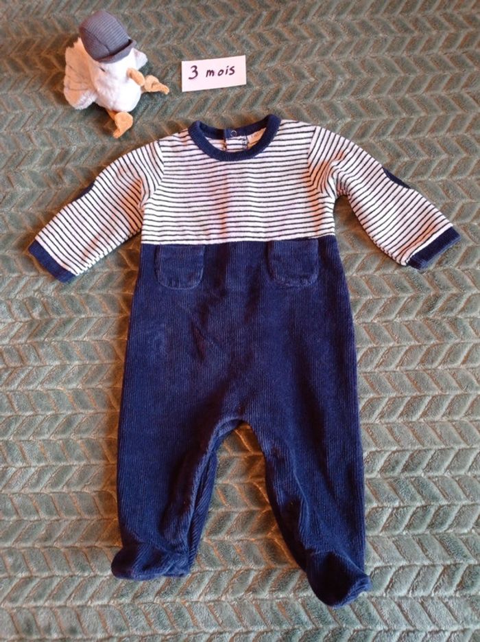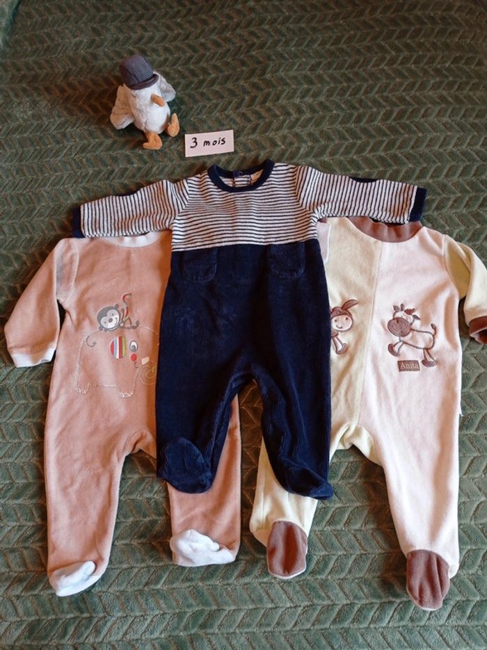 Lot de 3 pyjamas velours 3 mois. - photo numéro 1