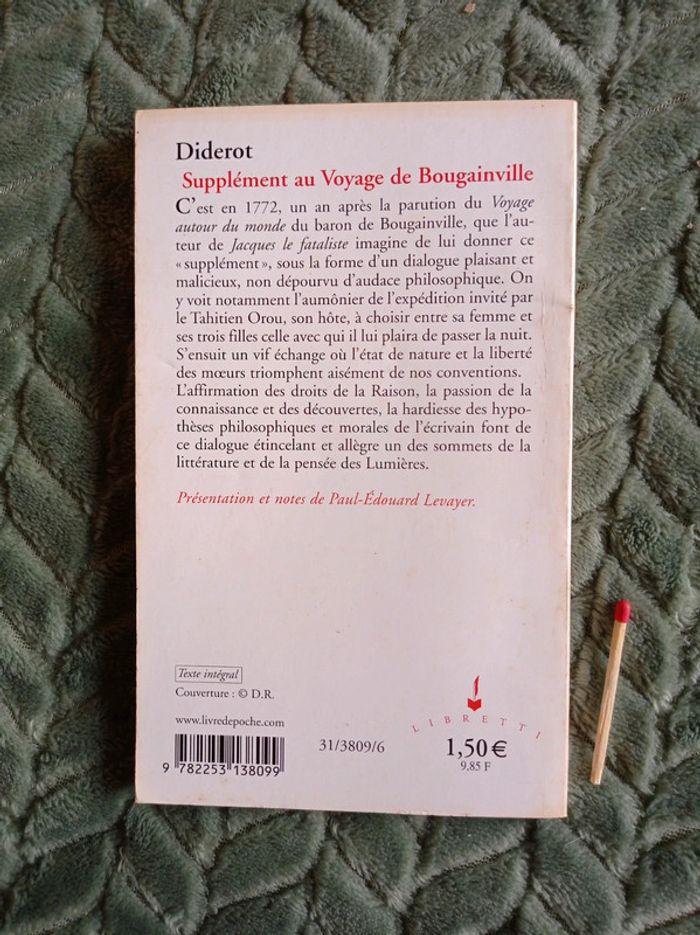 ❤️promo❤️ Supplément au voyage de Bougainville Denis Diderot Poche Jauni sur la première page. Ce livre passe à 0,50€ si achat par lot 😉 #nanoukou_livres_50cts Pour voir toutes mes annonces de livres afin de constituer un lot : #nanoukou_livres Merci de me contacter avant tout achat via UPS.