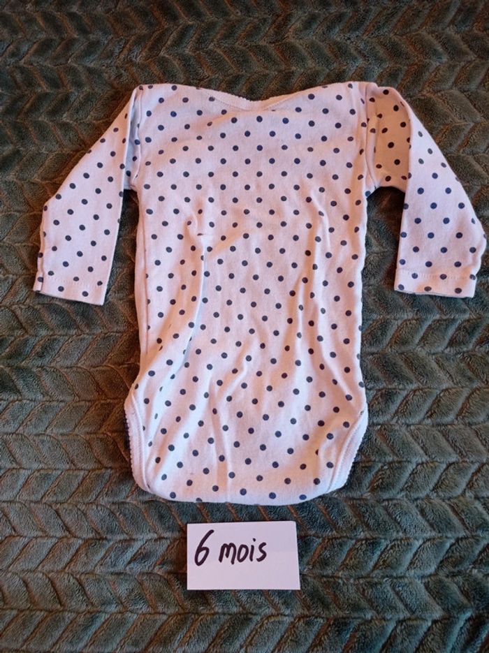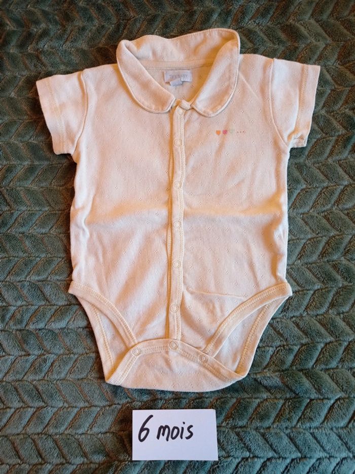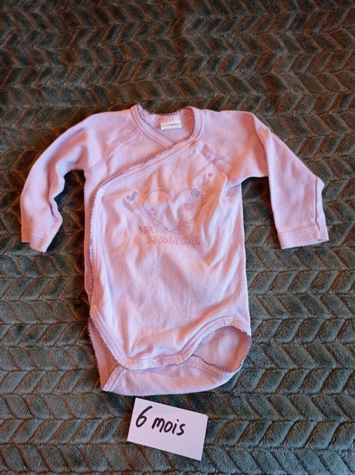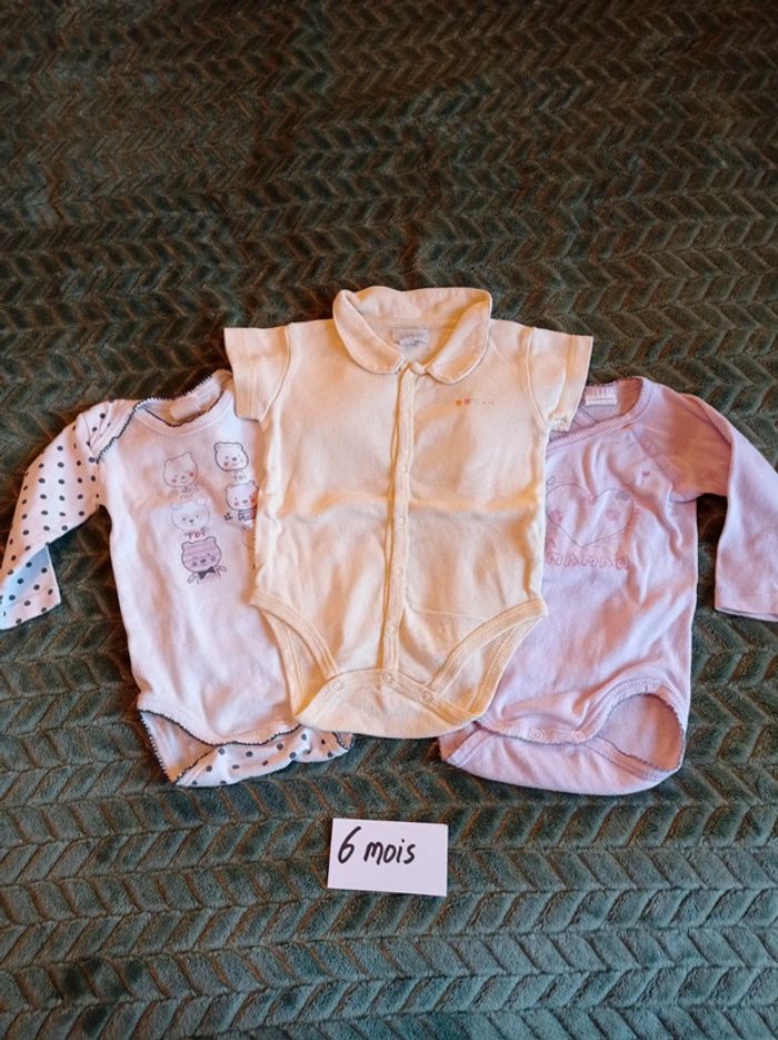 Lot comprenant : - un body jaune pâle à manches courtes. Col claudine et motif coeur sur la poitrine. Marque Tex Baby - un body croisé rose à manches longues. Inscription "J'💜 ma maman". Marque Mots d'enfants - un body col américain blanc uni et blanc à pois bleus. Motif de chats. Marque Absorba. En bon état (ni trou ni tâche) Pour voir toutes mes annonces en 6 mois afin de constituer un lot et bénéficier de réductions : #nanoukou_fille_6mois Merci de me contacter avant tout achat via UPS.