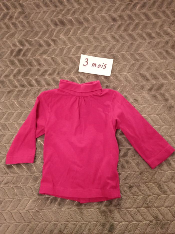 T-shirt col roulé rose 3 mois - photo numéro 1