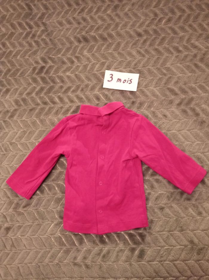 T-shirt col roulé rose 3 mois - photo numéro 3