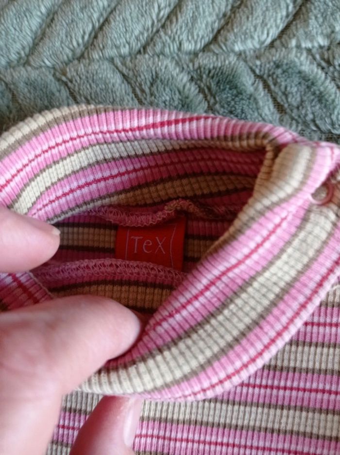 Vendu avec un t-shirt manches longues col roulé à rayures de marque Tissaia.