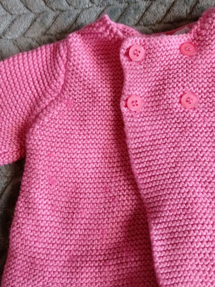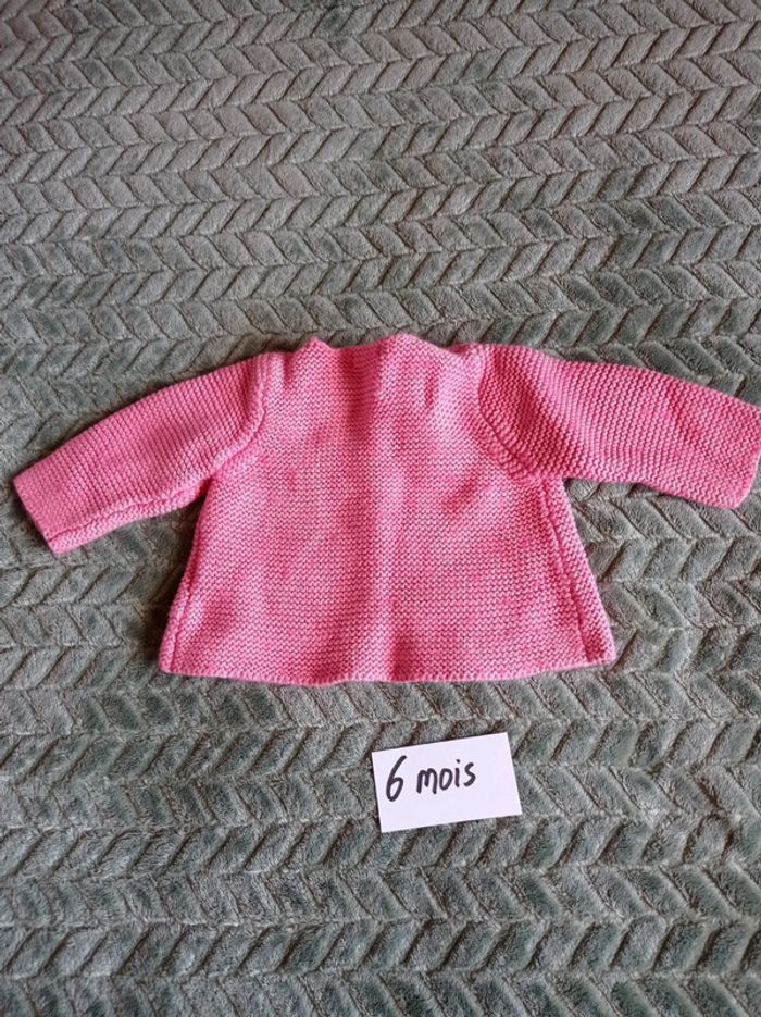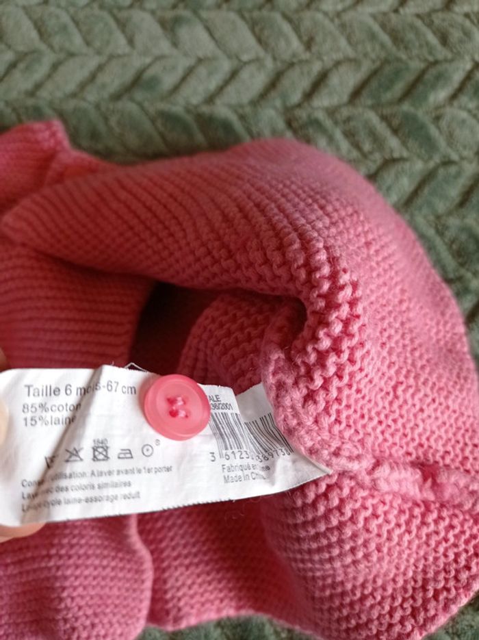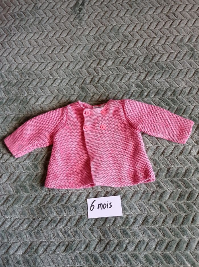 Gilet en maille coton et laine rose. Taille 6 mois. Quelques petites bouloches mais encore en bon état. Pour voir toutes mes annonces en 6 mois afin de constituer un lot et bénéficier de réductions : #nanoukou_fille_6mois Merci de me contacter avant tout achat via UPS.