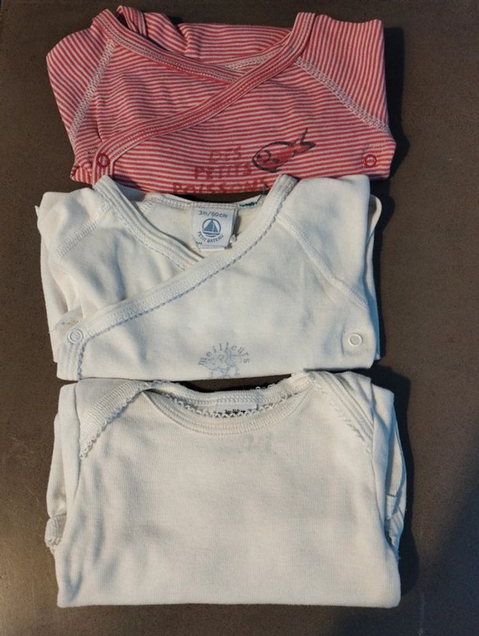 Lot 3 bodies petit bateau manches longues 3 mois - photo numéro 1