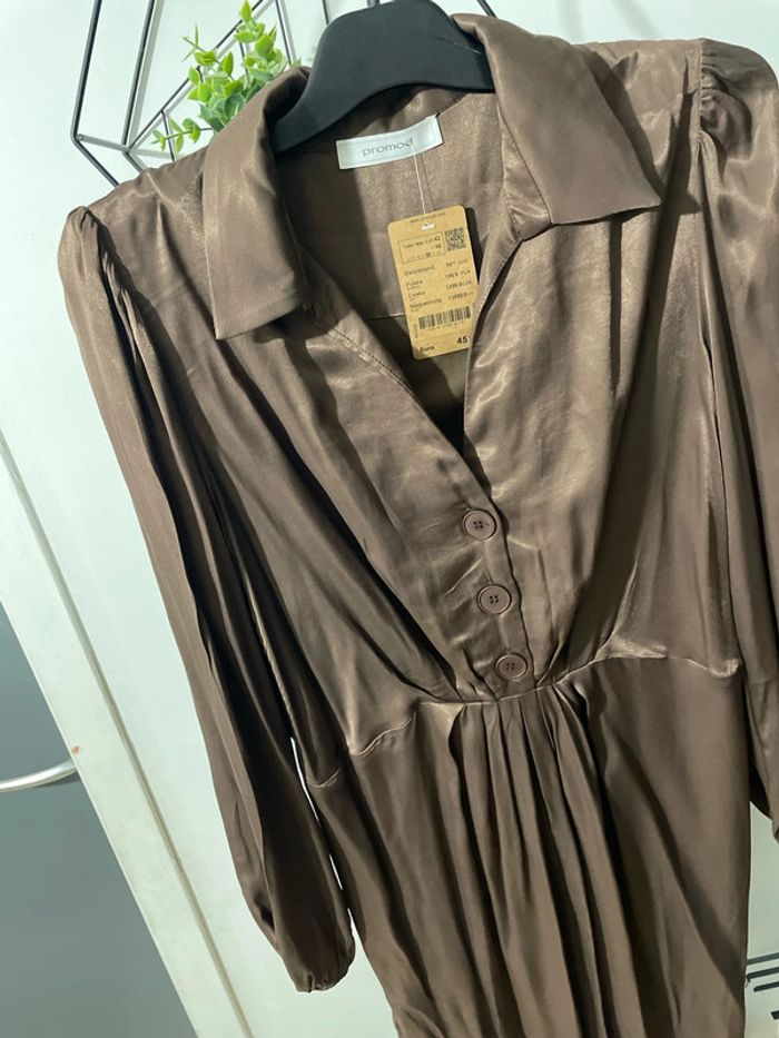 Robe tissu satiné Neuve avec étiquette Couleur marron glacé