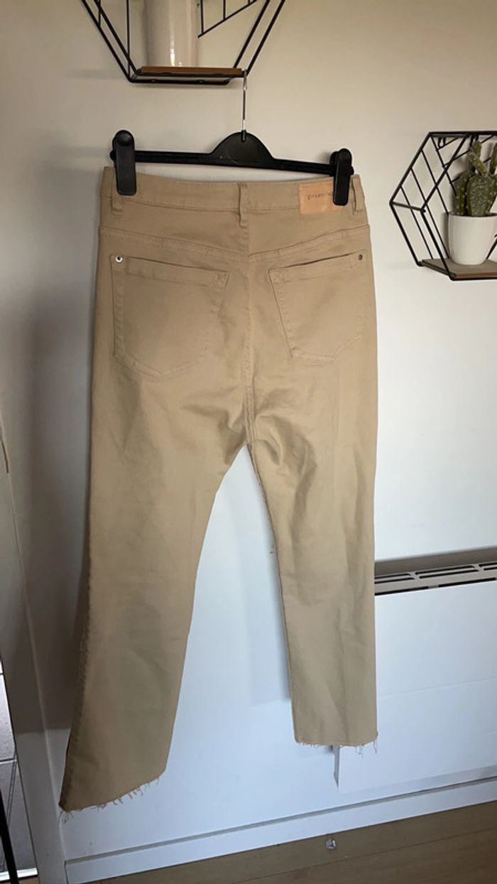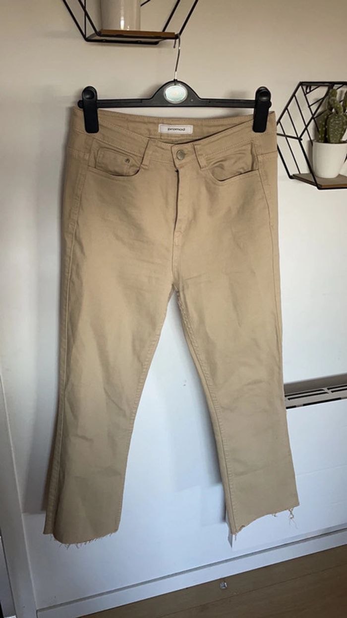 Jean beige évasé et effiloché dans le bas Longueur crop Taille 38 Très bon état