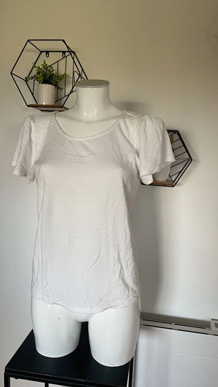 T shirt blanc en coton Motifs en relief Taille L Très bon état