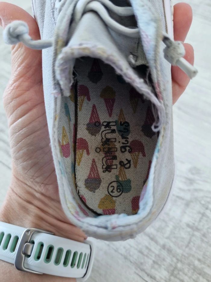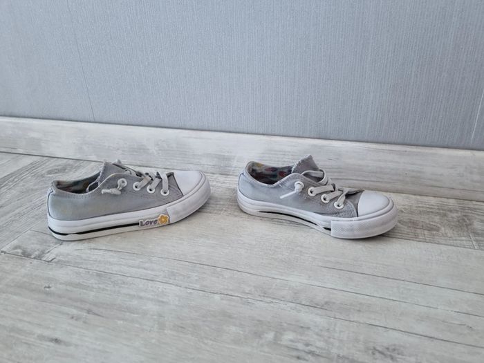 Tennis Pointure 26 Bon état. Les chaussures en elles même sont en très bon état (pas abîmées), il y en a une qui présente des tâches sur les côtés (voir photos). Sans ça elles sont en très bon état Marque Ninie et Girls