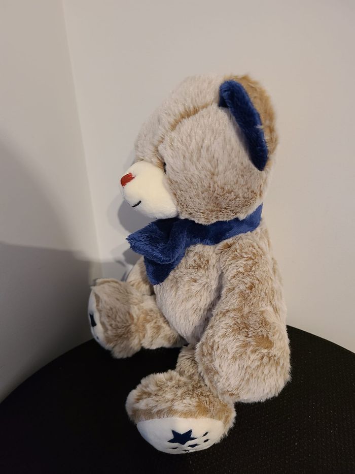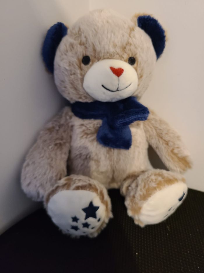 Peluche Doudou Ours FRANCOISE SAGET Marron Echarpe Bleu Cœur Rouge 111