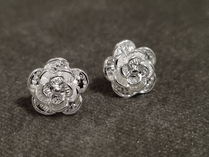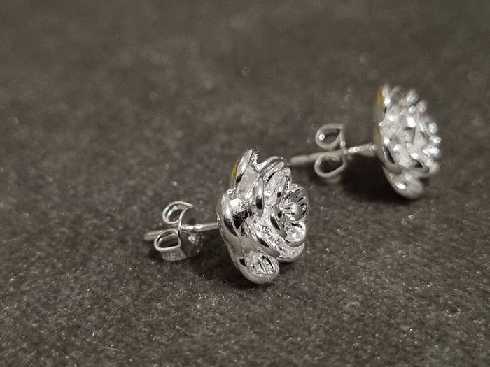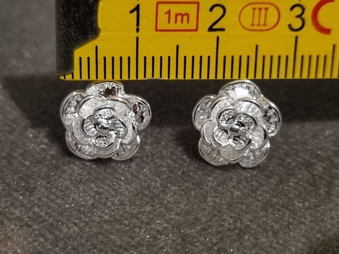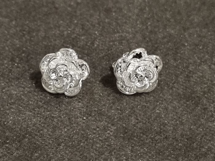 Boucle d'oreille florale plaquée argent 925 - photo numéro 1