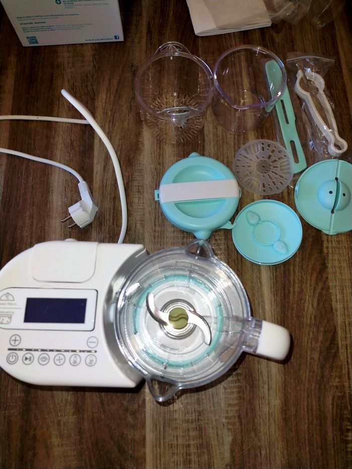 Je revends ce robot acheté ya pas longtemps pour préparer des petits pots, fonctionnes encore très bien avec tous les accessoires venu.