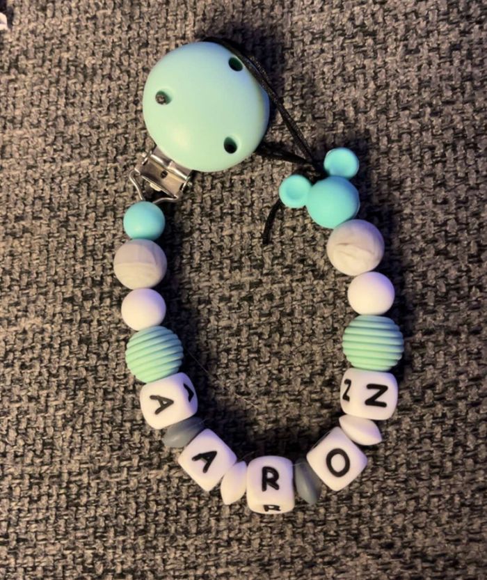 1 attache tétine 10€ Attache tétine personnalisé au crochet ,en silicone ou en bois au souhait de l’acheteur . Personnalisable au choix de l’acheteur que ce soit la couleur comme le prénom ou le thème . Le fil est doublé pour plus de sécurité tout le long de l’attache tétine. N’hésitez pas à me demander et regarder mon dressing. Une photo vous sera envoyée avant l’expédition pour vous ayez un aperçu du rendu. Tous les produits sont réalisés avec du materiel spécial conçu aux bébés , enfants.