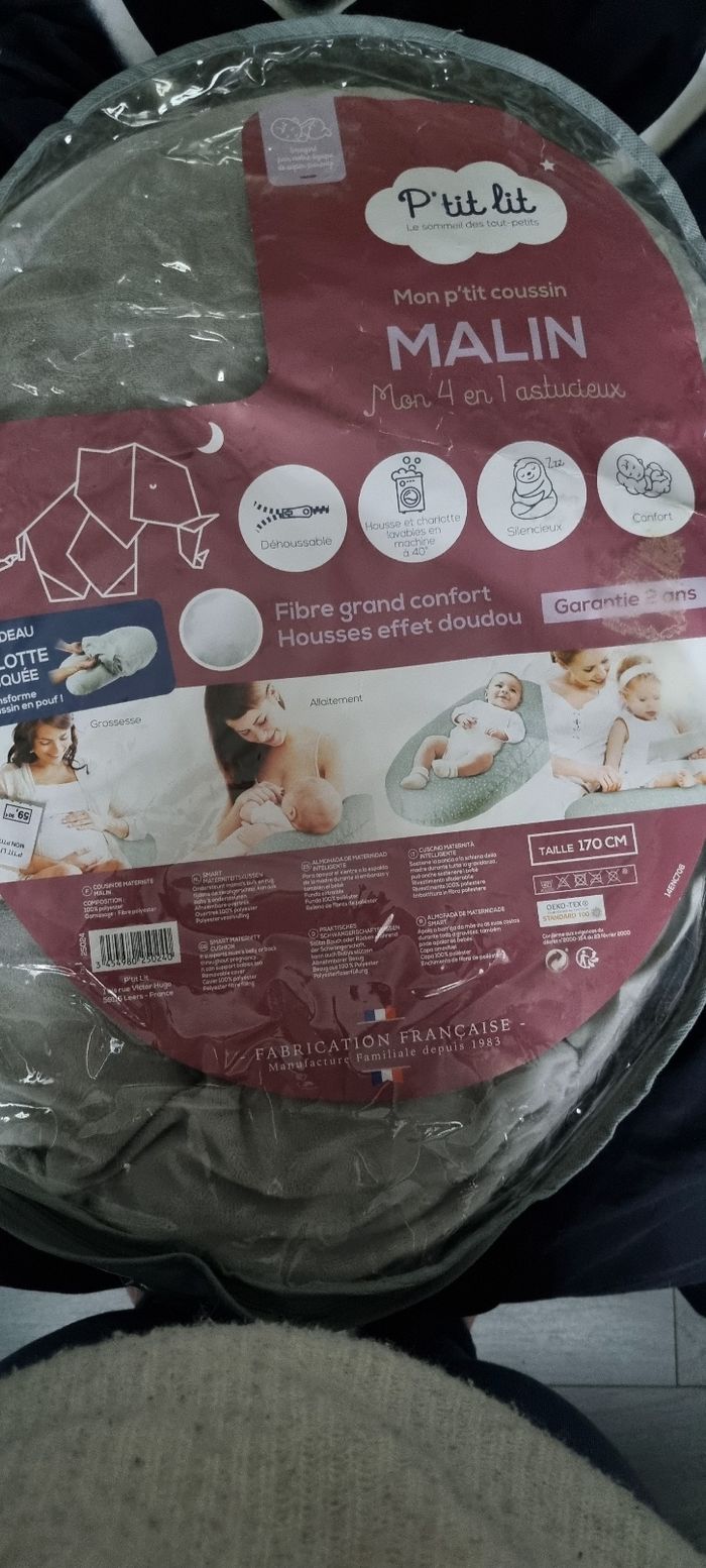 Vends coussin de grossesse 4 en 1 ( coussin de grossesse, allaitement, pose bébé). Mesure 170 cm.