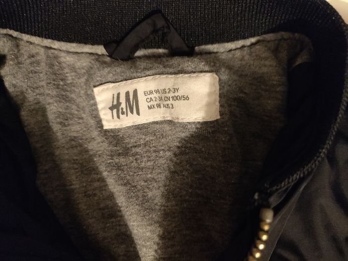 Veste style bombers H&M 2-3 ans, fermeture à glissière,poche zippée sur une manche et boutons à pressions pour les poches à l'avant.Très bon état.