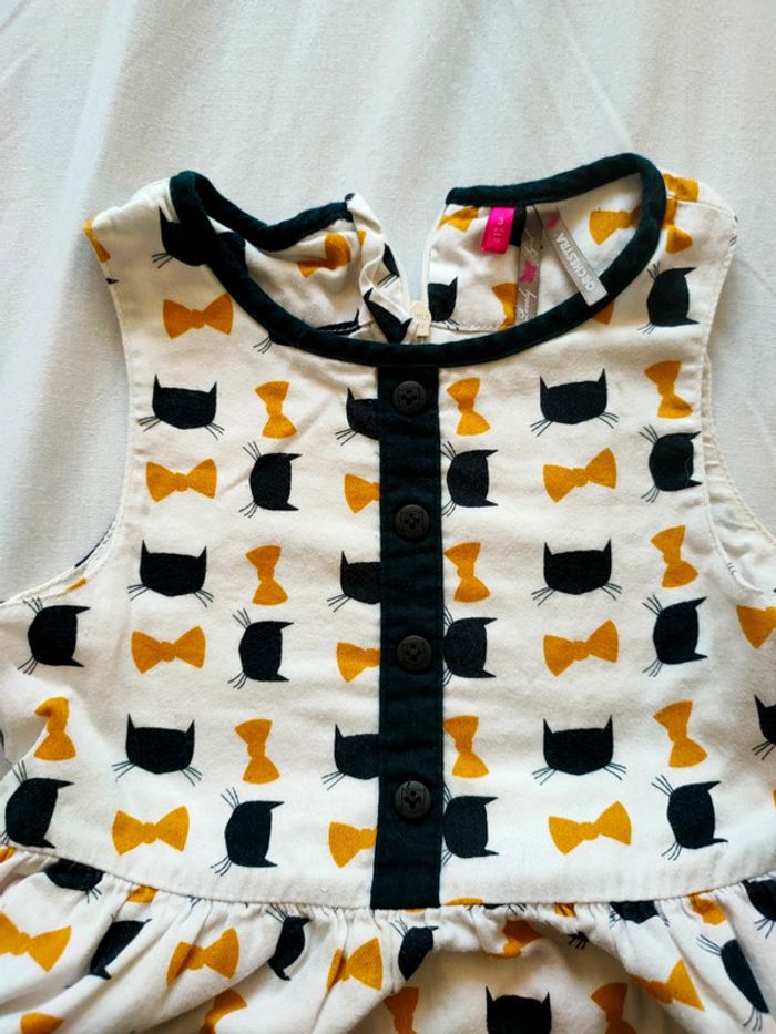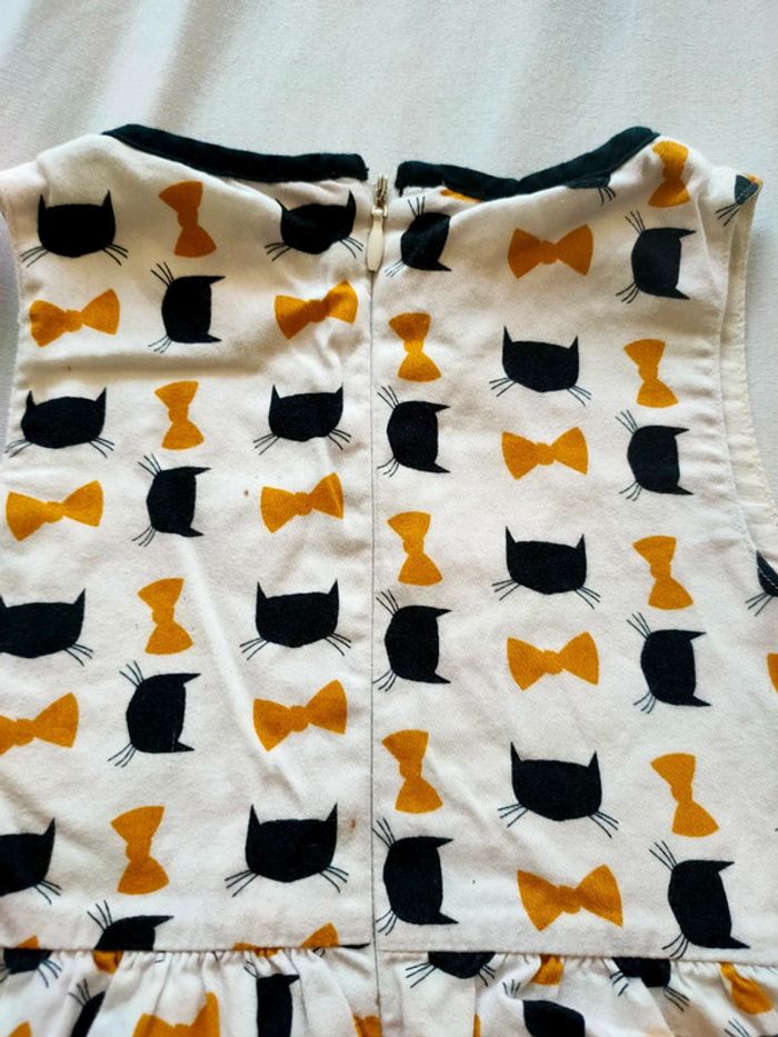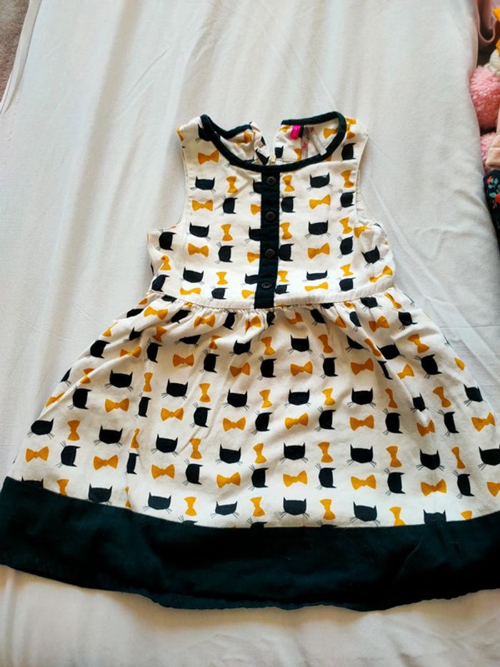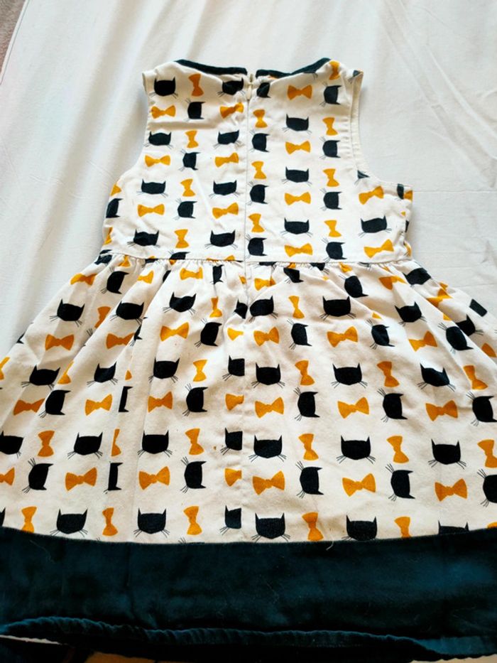 Robe 3 ans imprimé chat marine et doré bon état doublée / petits boutons devant