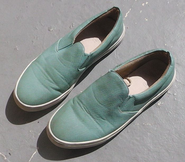 Mocassins croco vert, semelle blanche