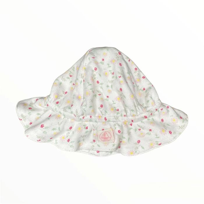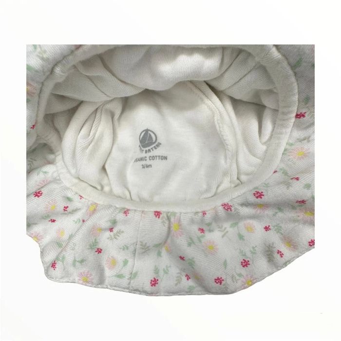 "Chapeau en côte à fleurs, Petit Bateau, en parfait état, taille 3 - 6 mois.