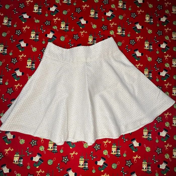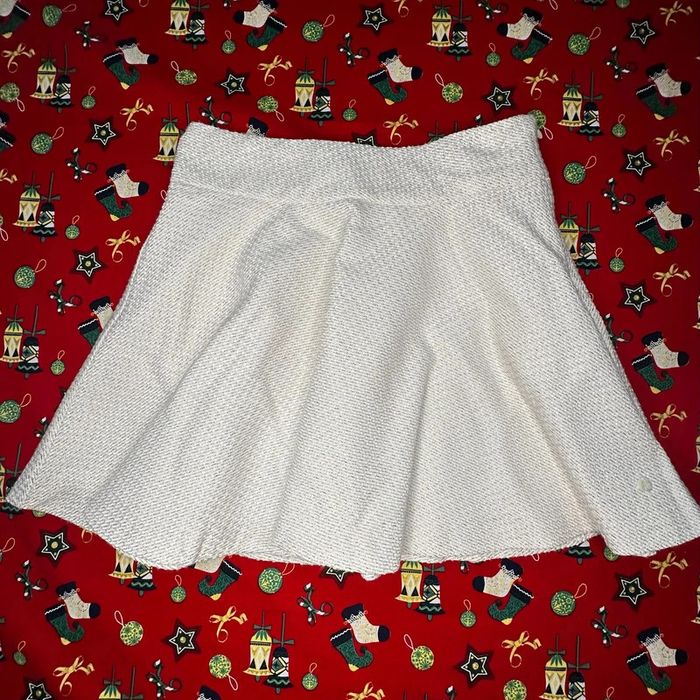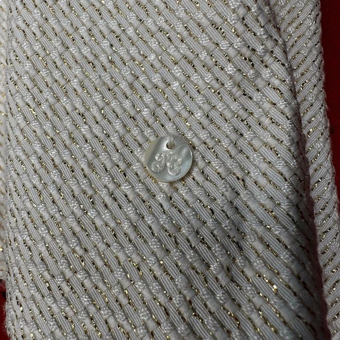Couleur crème avec des liserés dorés sur toute la jupe, avec un détail T&C en nacre.