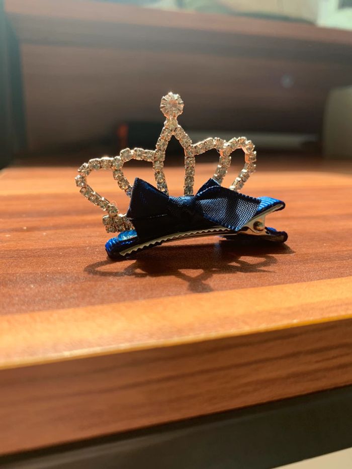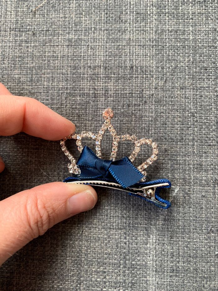 #barrette #couronne de #princesse avec un petit #noeud #bleu #marine #neuf #neuve