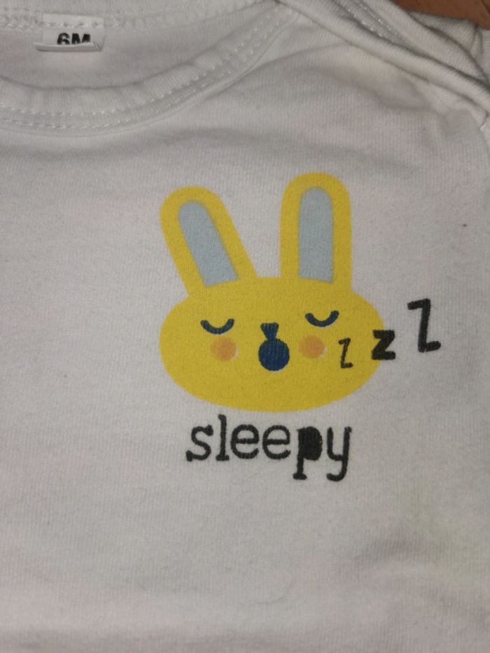 6 mois De couleur blanc un motif lapin "sleepy" et un motif chat "Dreamer" Pression en bas