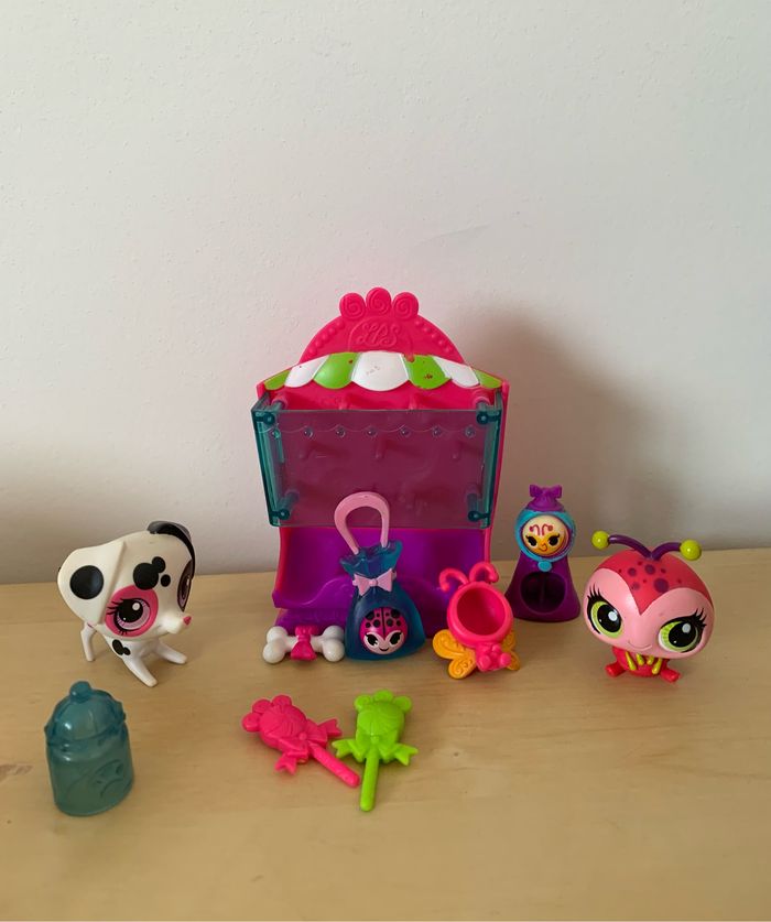 - Set complet, aucun objet manquant (voir dernière photo) - Certains objets sont décolorés (voir photos) - Globalement très bon état - Set rare (voir photo amazon) #LPS #LittlePetShop #rare