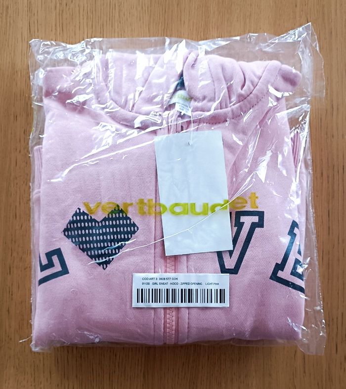 Neuf : Sweat zippé à capuche sport Vertbaudet rose 4 ans 104 cm