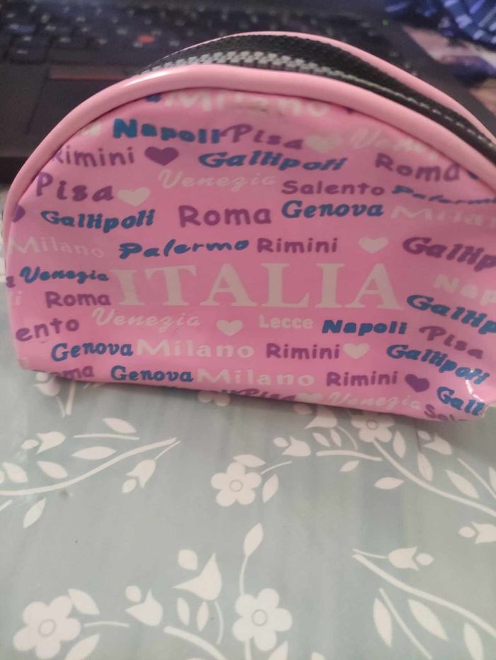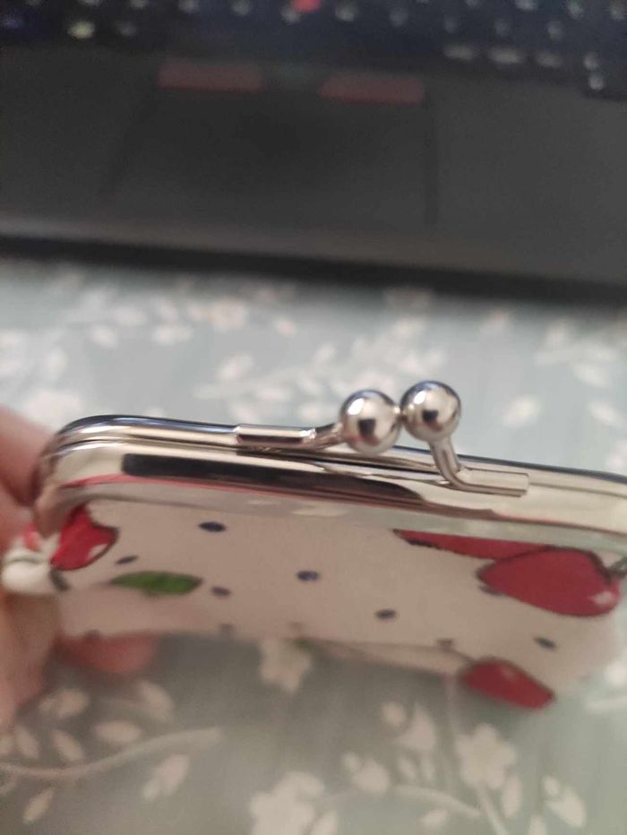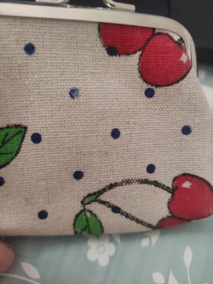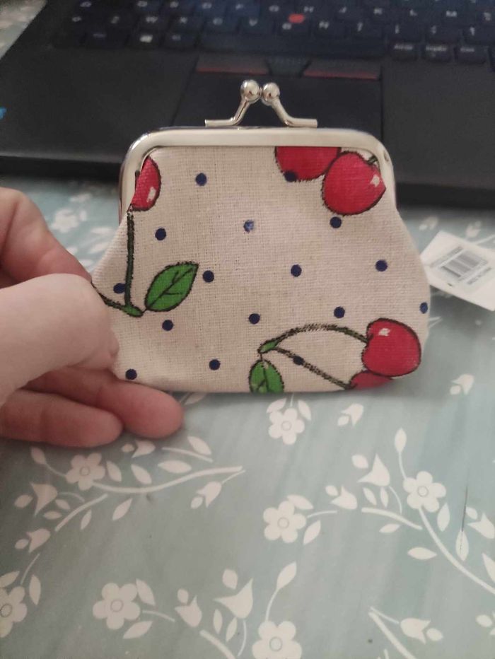 Lot de 3 porte monnaie : - un petit en simili cuir couleur marron - un autre rose avec inscription villes italiennes - le dernier en tissu beige forme vintage avec des cerises