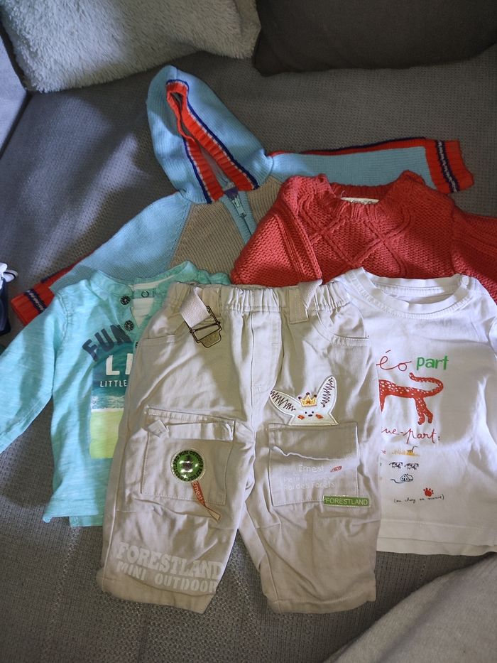 Lot 3 mois 1 gilet, 1 pull, 2 t shirt, 1 pantalon Très bon état Orchestra/ Gémo / Mini gang/ de bon matin
