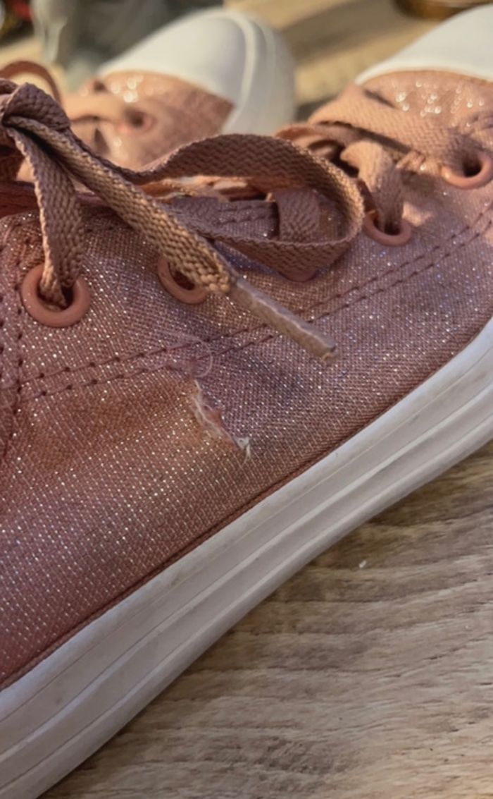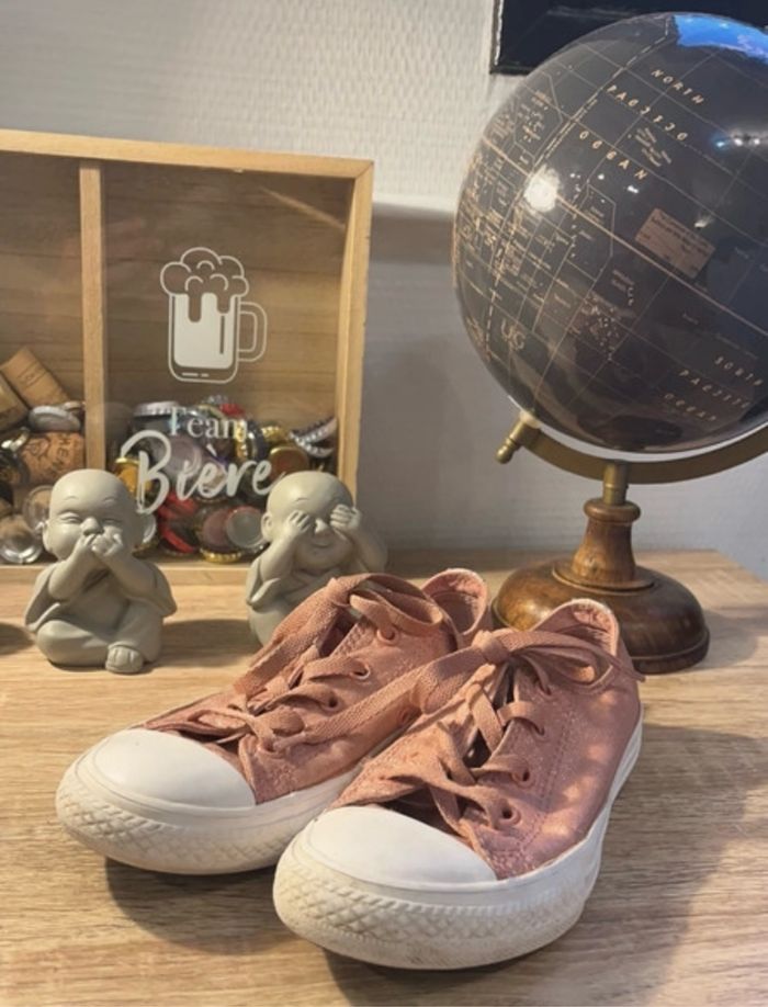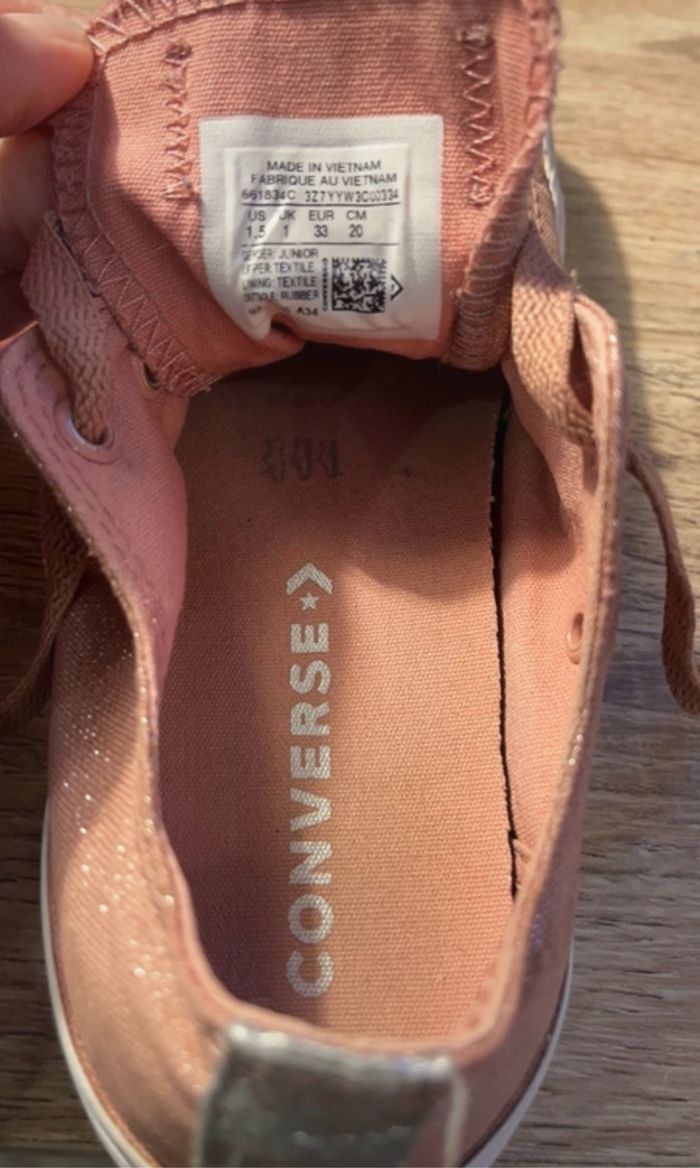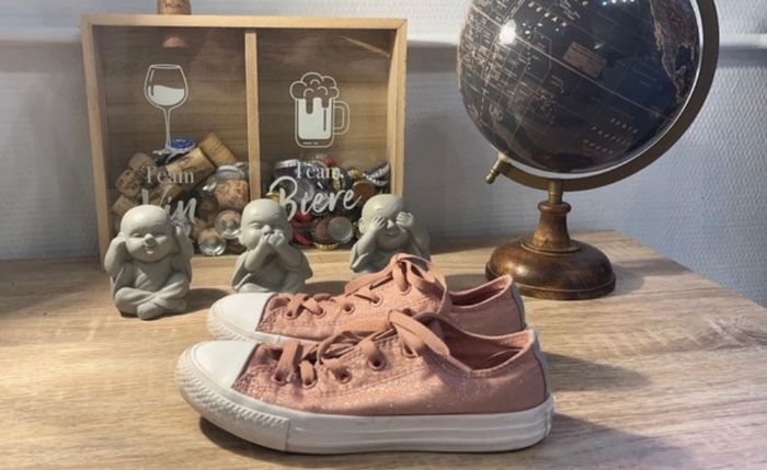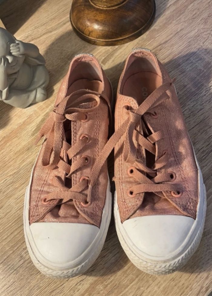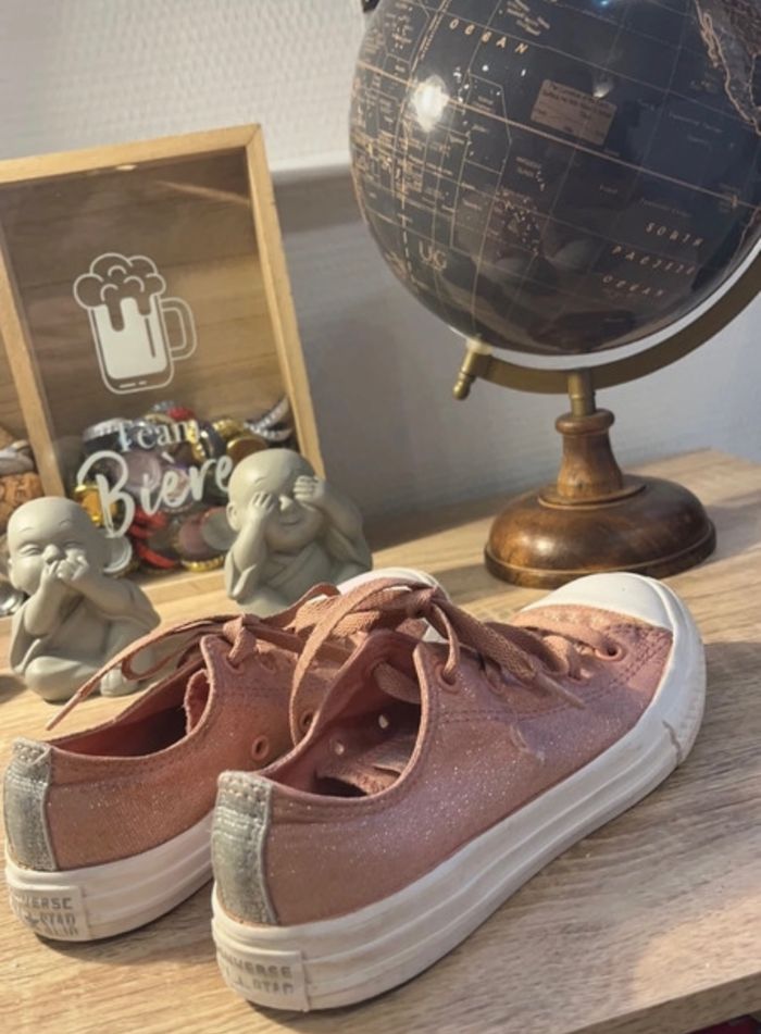 Converse rose pailletées pounture 33,5 Déjà portées , photos conformes à l article , defaut d ou le prix réduit :coupure présente sur le côté voir photo mais qui n’a pas percée la doublure . Possibilité de mettre plusieurs articles dans le meme colis sans frais de port supplémentaire #converse #converseallstar #conversebasses #conversefille33,5 #pointure33,5 #baskets #basketsfille #besketsconverse #kalenjichaussurespointure33 #comptekalenji #accessoirekalenji