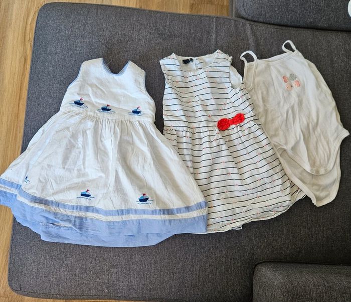 2 robes en très bon état et un boddie obaibi Taille 24mois 86cm #cadetrousselle #neufavecettiquette #robes24mois #lotété24mois #sergentmajorfille #neufavecetiquette