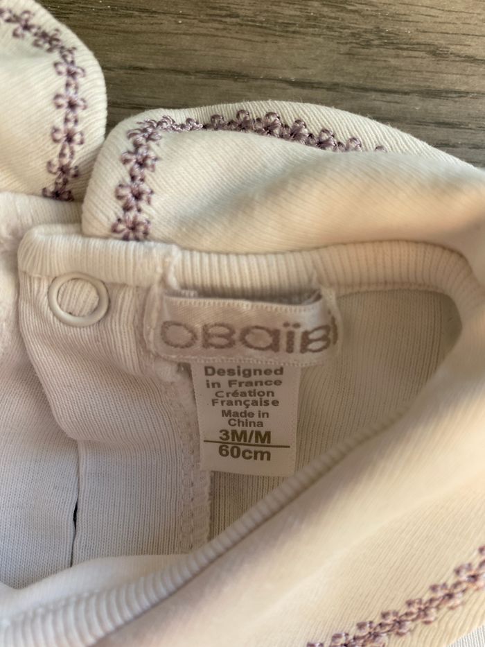 Pyjama coton écru et mauve 3 mois - photo numéro 3