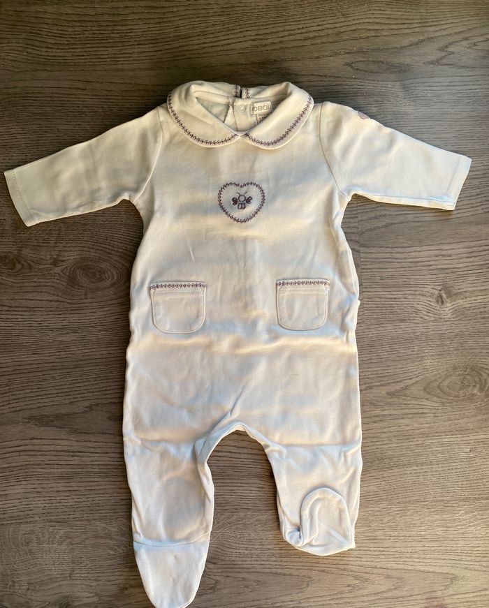 Pyjama coton écru et mauve 3 mois - photo numéro 1