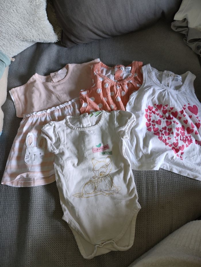 Lot 9 mois 1 robe, 2 débardeur, 1 body Disney, kitchoun Très bon état