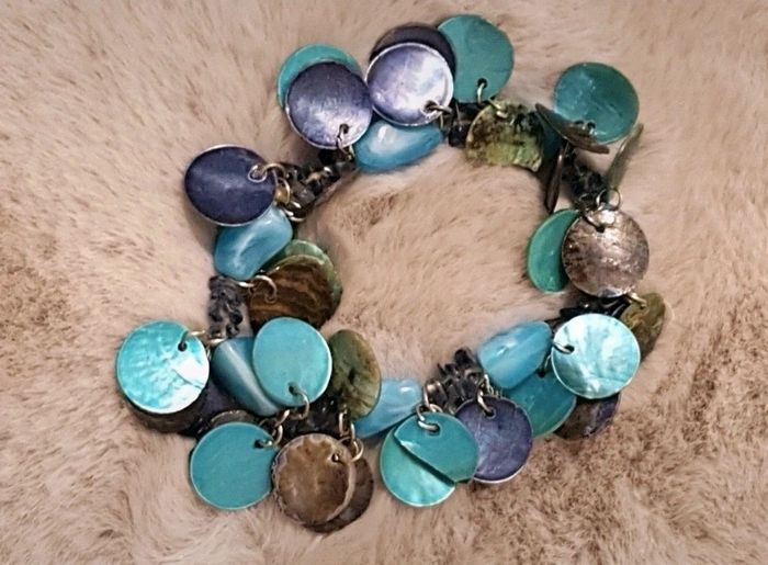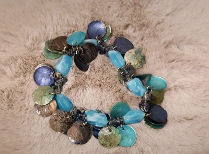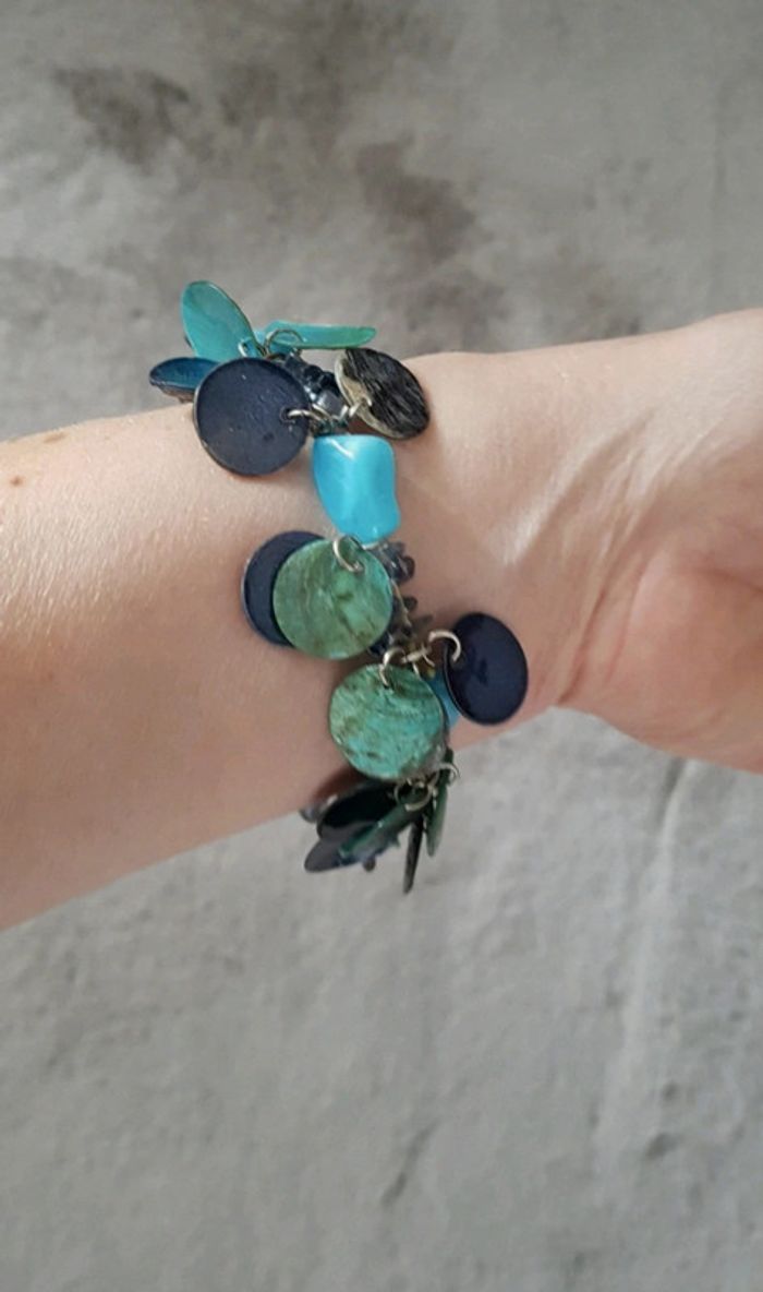 Bracelet fantaisie dans les tons bleus, élastiqué. Très bon état #flagadajonesbijoux #bracelet