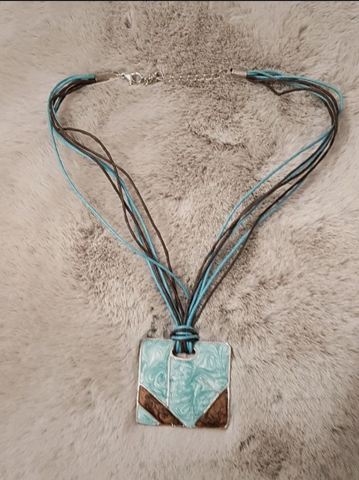 Collier fantaisie turquoise et marron - photo numéro 1
