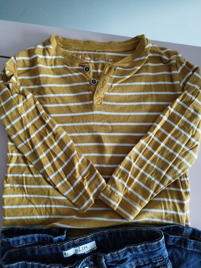 Jean slim Kiabi en taille 4 ans en très bon état, comme neuf T-shirt Gémo en taille 4 ans en bon état